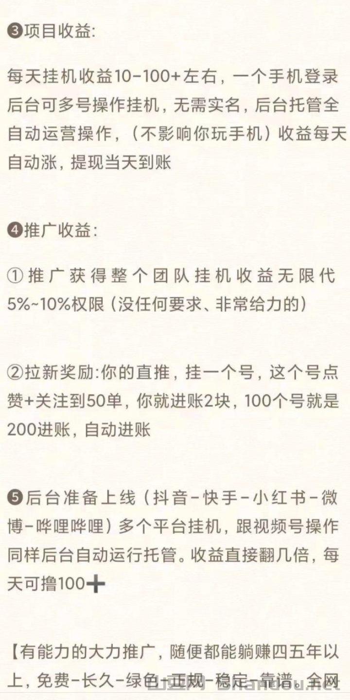 手机自动赚官网版首码,全新自动掛机项目,主打视频号等平台全自动点赞、关注、收藏,挂上去就不用管了,不用截图上传提交任务,全程自动完成,省心省力,推广收益无上限,采用芜限代渠道模式,赶紧上车致富。